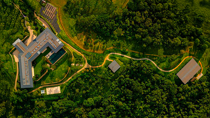 Located on a steep slope amidst a forest reserve, the RDJ Residence project sought to blend seamlessly with the topography of the land. The goal was to create a house that, at first glance, appeared to be single-story, but would gradually unfold through the basement and other pavilions that compose the descent path.